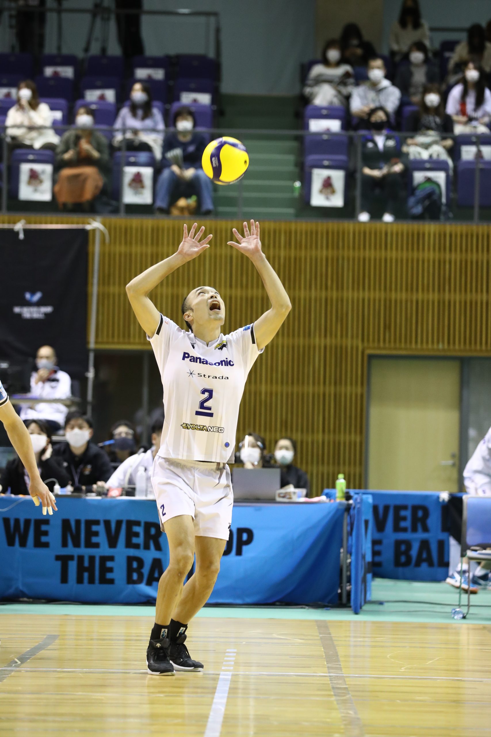 深津選手 どんどん上げます!! では僕は兒玉選手を。とはいえ、皆さん、そんなに注目しなくても大丈夫ですよ、そうでなくても彼は大声を出しているので(笑) 兒玉選手は入団してから出場機会も少なかったのですが、昨季は出番も増えたことで年々、力をつけてきていると感じています。それに練習では誰よりも高いアタック決定率をたたき出しています。今季こそは、という覚悟を彼自身がいちばん持っていると思うので、その姿を見てもらいたいです。