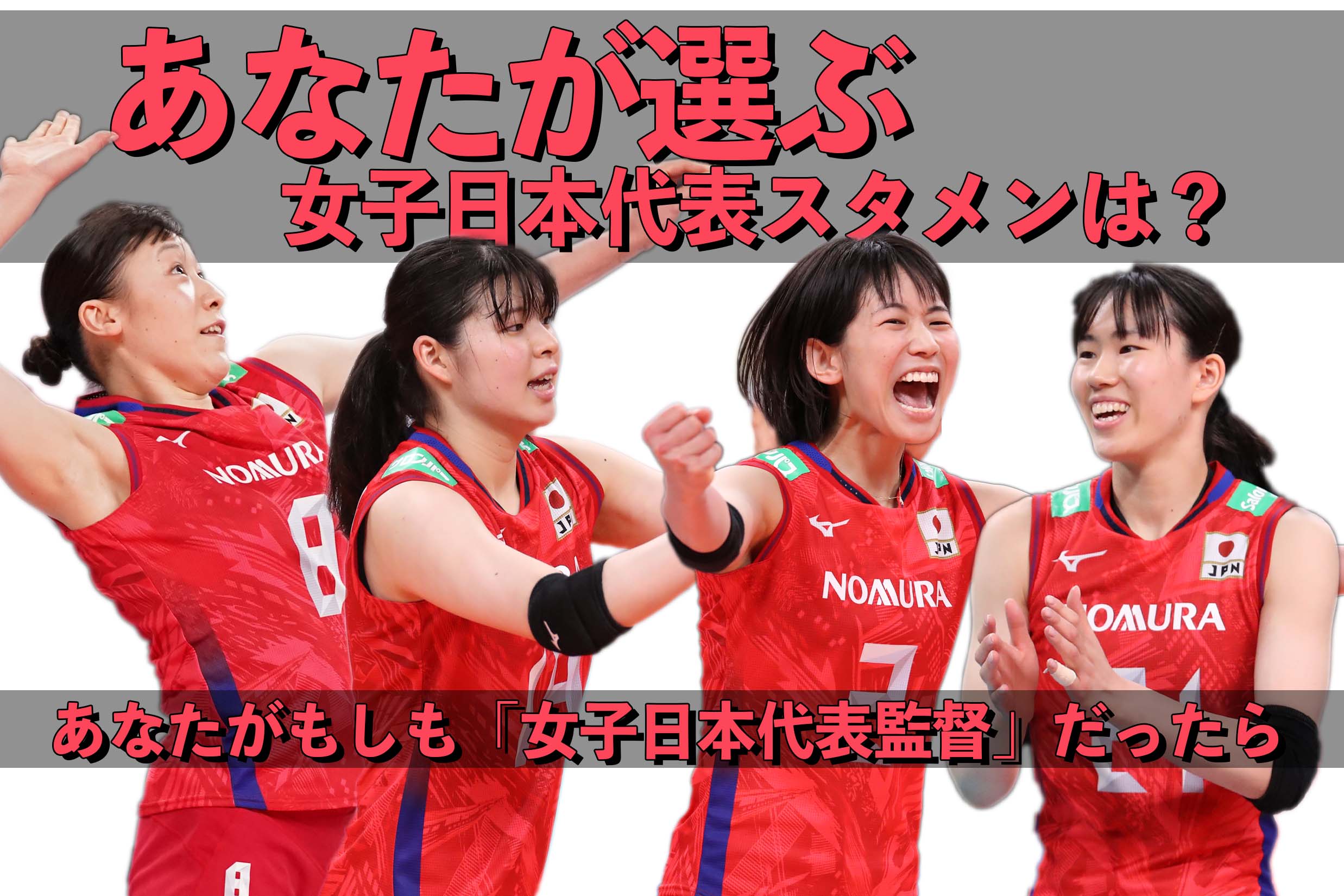 あなたはたった今から女子日本代表の監督です。今年度の日本代表登録メンバーの中からスタメン7名を選び、そのチームのコンセプトと愛称を記入してください。後日、皆さんが投稿してくれた一部を紹介します。