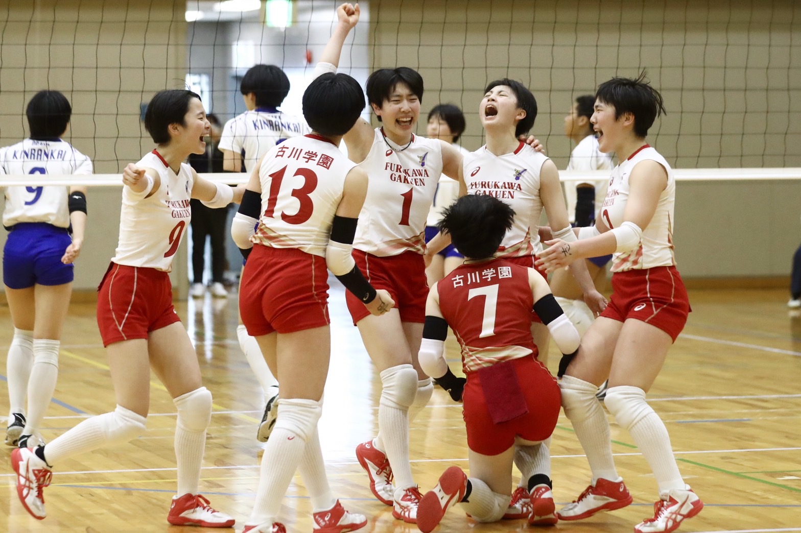 さくらバレーで歓喜の瞬間を迎える阿部(左から3番目)と熊谷(同5番目)