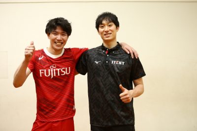 <柳田将洋(ジェイテクトSTINGS/左)と栁田百織(富士通カワサキレッドスピリッツ/右)>