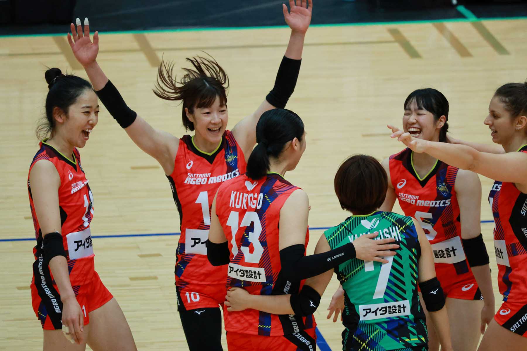 6戦を終えて4勝2敗の4位につけていた埼玉上尾メディックスは、大田区総合体育館(東京都大田区)で今季初のホームゲームを迎えた。18日の岡山シーガルズ戦はサラ・ロゾ(セルビア)が17得点、佐藤優花が14得点をあげてチームの攻撃をけん引し、ストレートで勝利。19日の東レアローズ戦は佐藤が17得点、ロゾと仁井田桃子がそれぞれ13得点の活躍で、再びストレートで勝利した。埼玉上尾はこれで開幕の2連敗以降、すべてストレートでの6連勝と調子を上げている。