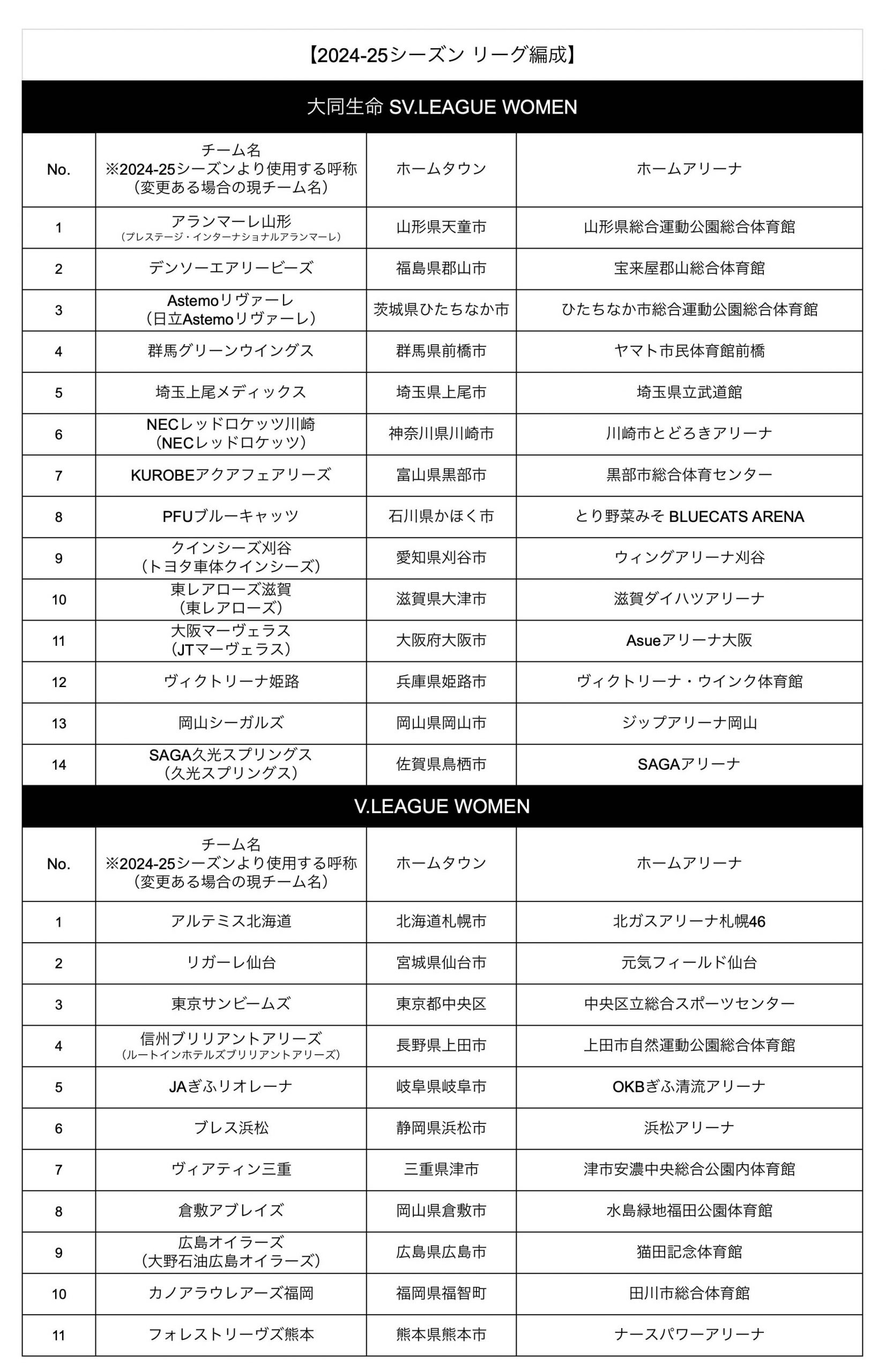 一般社団法人ジャパンバレーボールリーグ(JVL)はクラブライセンス継続審議となっていたライセンス交付判定結果と、2024-25シーズンのSVリーグ、Vリーグの編成を4月17日(水)に発表した。