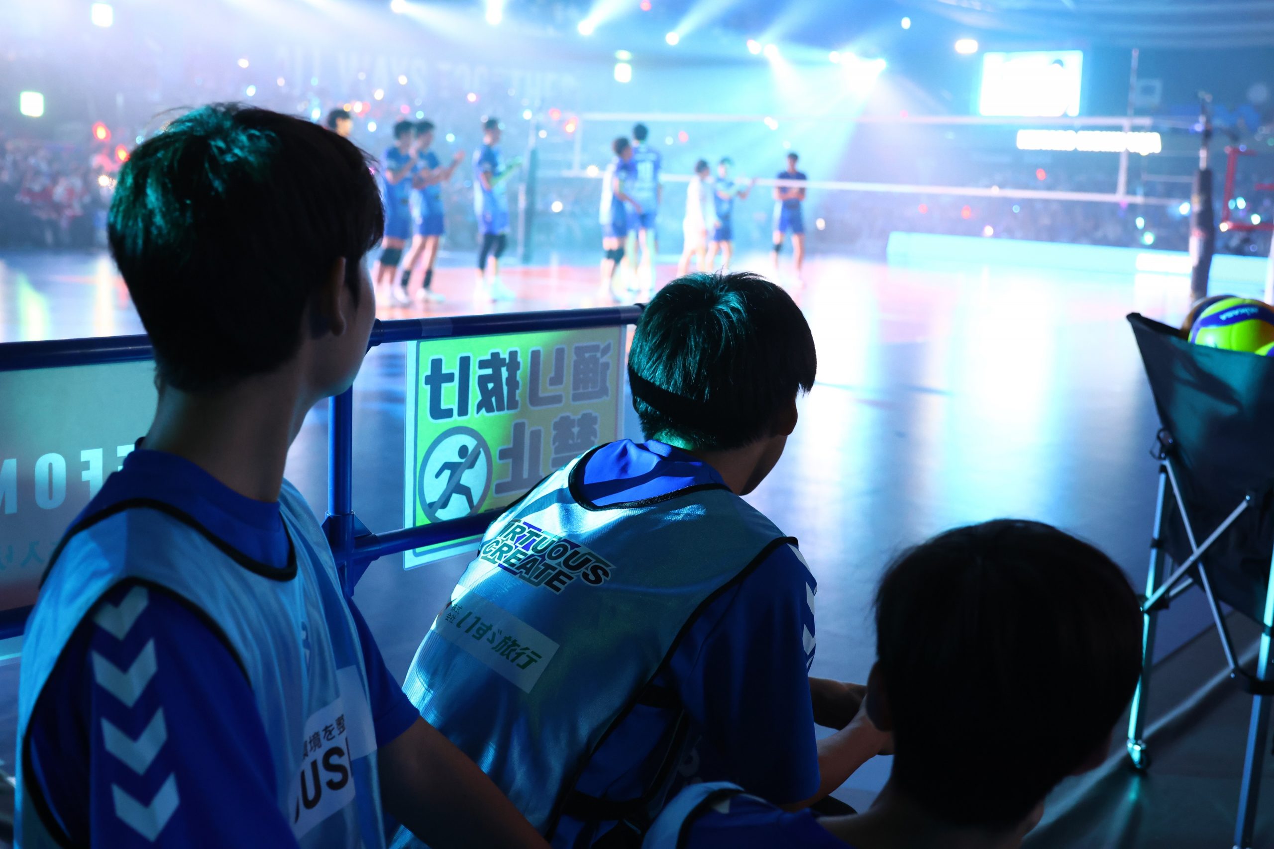 ため息まじりに興奮を隠せずにいたのは、コートの角に構える中学生たちも同じだった。彼らは大阪ブルテオンの傘下である「大阪ブルテオンU15」の選手たち。その日はトップチームである大阪Bのホームゲームであり、彼らはボールリトリバーやモッパーとして競技運営に携わっている。これまでにも見られた光景だが、選手によっては緊張している様子も。中学生の一人が、背筋を伸ばして口にする。
