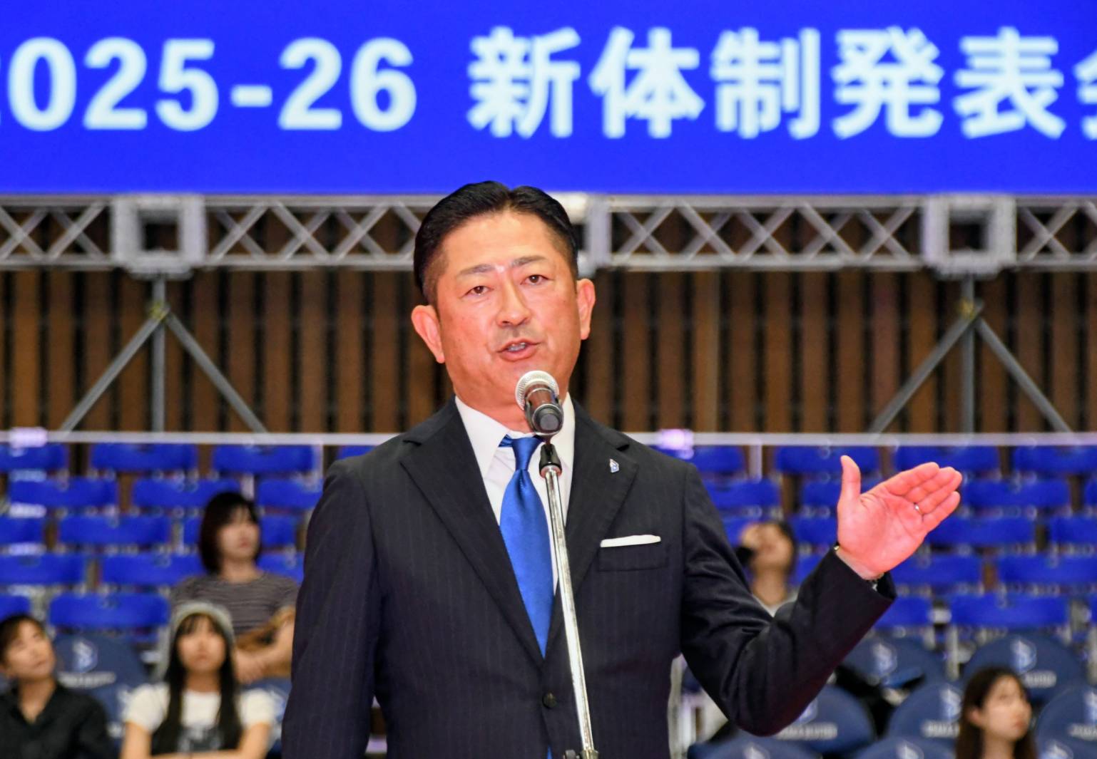 大阪B2024-25シーズン、レギュラーシーズンを1位でチャンピオンシップに進出したが、セミファイナルで敗れて最終順位は3位に甘んじた。今季から主将に就任したオポジット西田有志は「(チームに加わって)3シーズン目になるが、まだ優勝できていないという歯がゆさはある」と吐露。「負ける姿を見せることもあるかと思いますが、昨日より今日、今日より明日と、僕たちは戦うことをあきらめない。全員が優勝という目標に向け取り組んでいく」と、集まったファンに決意を披露した。