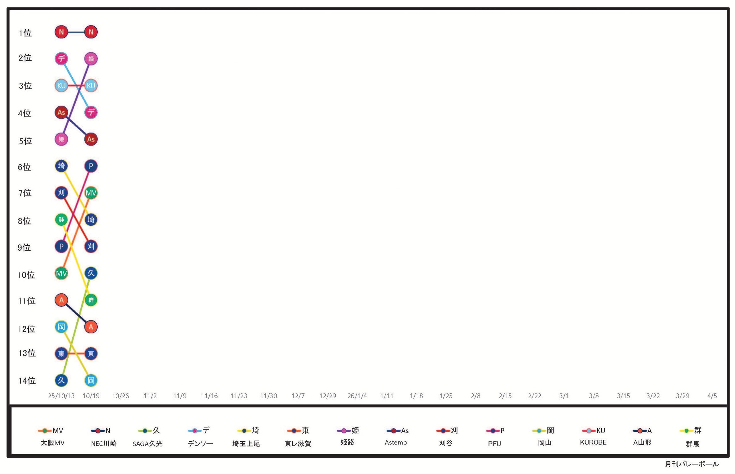 SV女子順位推移表(10月19日終了時点)