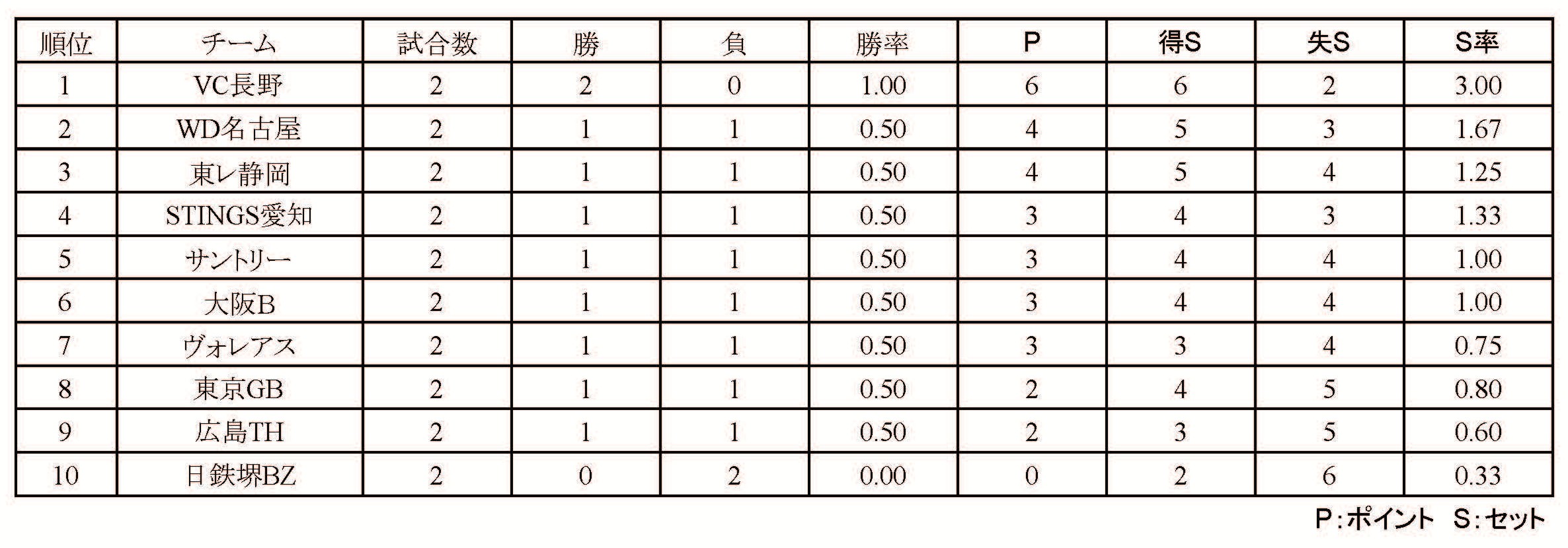 そのほか、ヴォレアス北海道はジェイテクトSTINGS愛知と、東レアローズ静岡は東京グレートベアーズと、ウルフドッグス名古屋は広島サンダーズと星を分け合った。