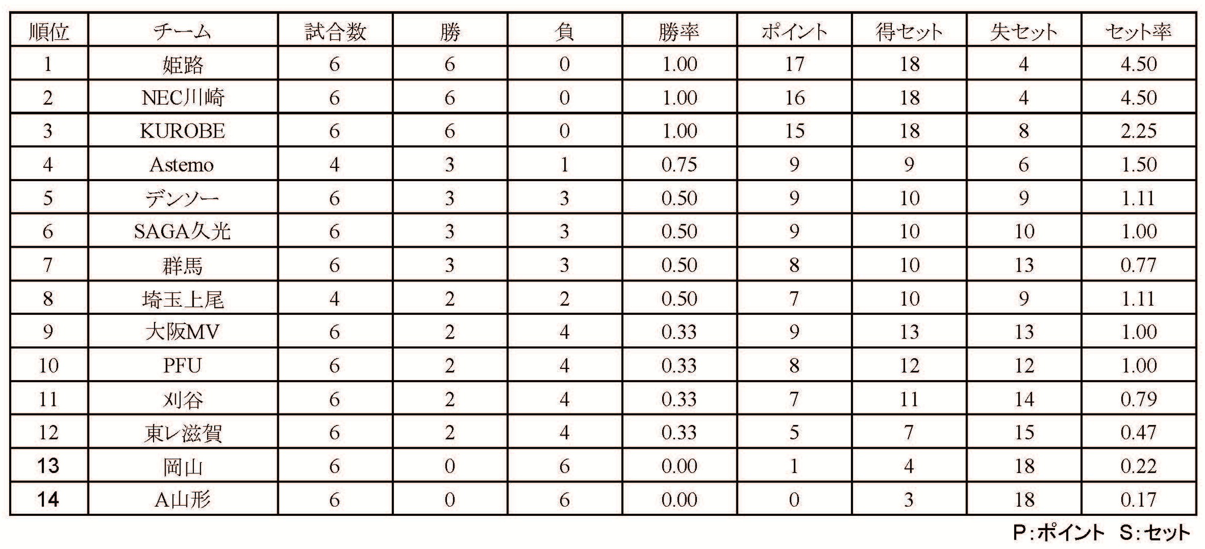 そのほか、KUROBEアクアフェアリーズ、ヴィクトリーナ姫路、SAGA久光スプリングス、群馬グリーンウイングスがいずれも連勝。KUROBEと姫路は開幕からの無敗を守った。