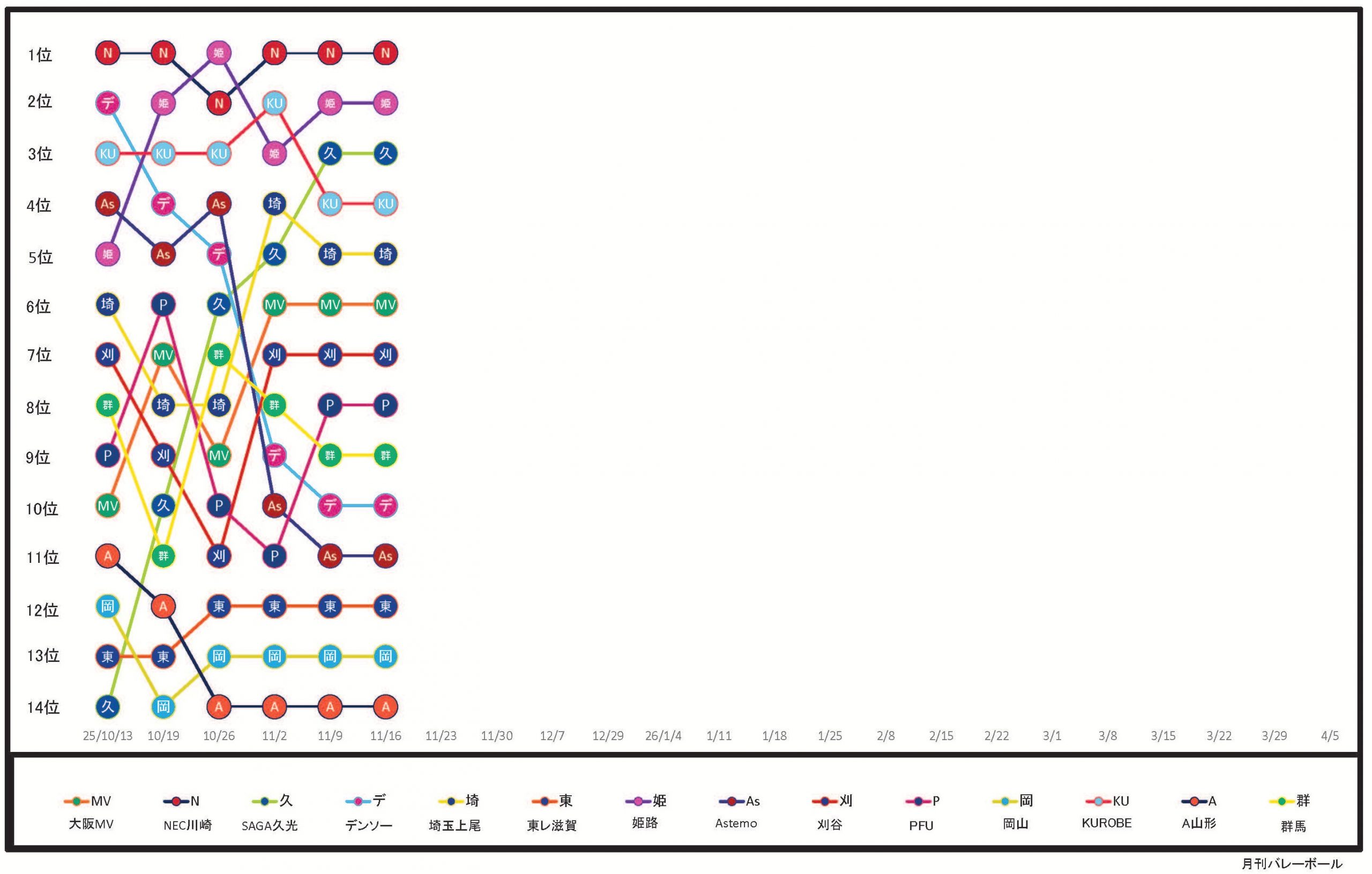 バレーボールの国内最高峰リーグ、2025-26大同生命SV.LEAGUE WOMEN(SV女子)は11月15日(土)と16日(日)の2日間で14試合が行われた。