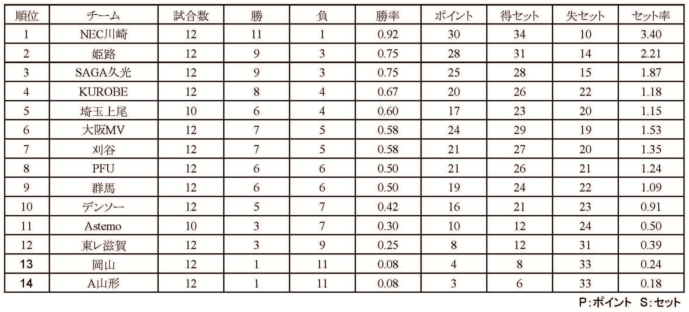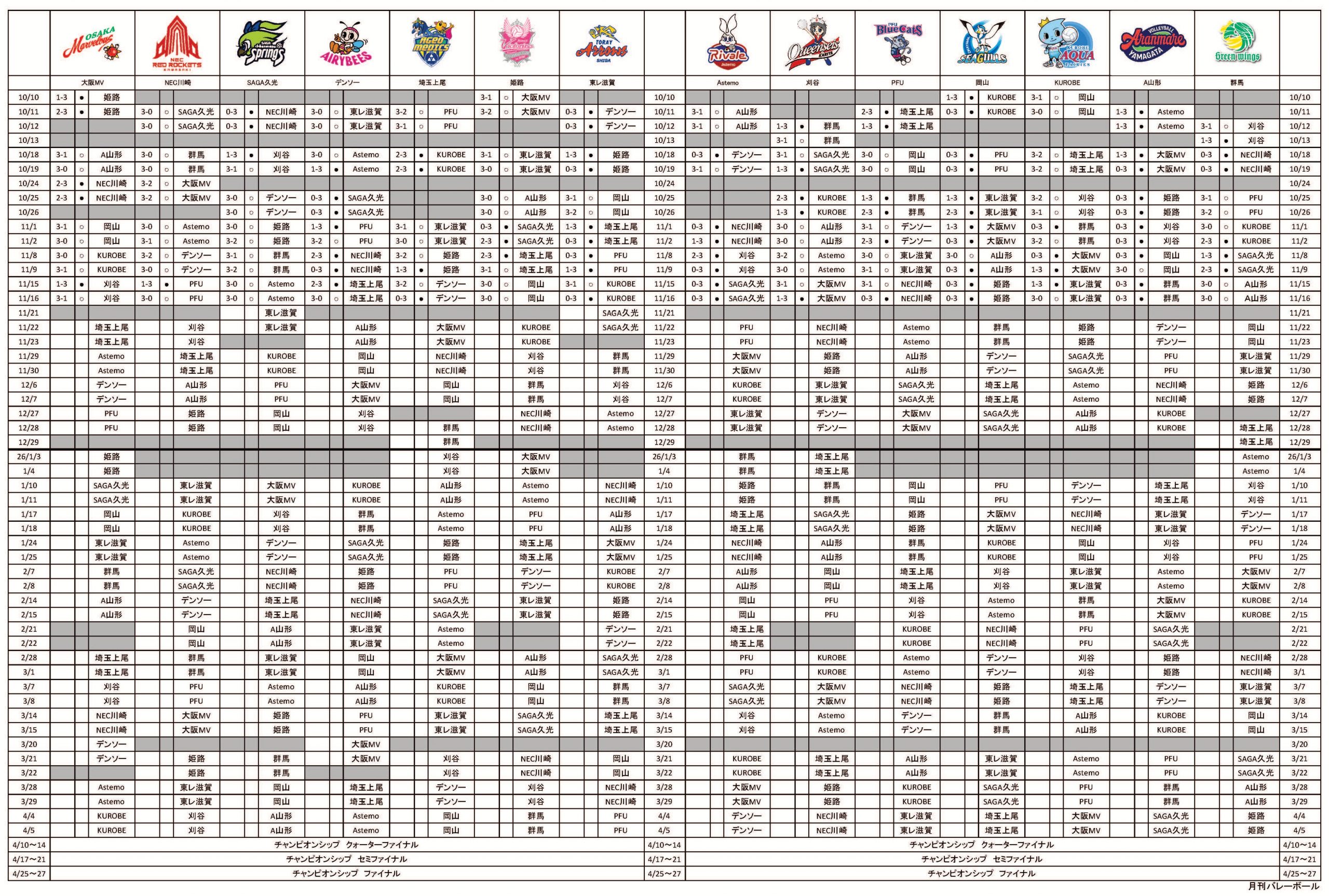 そのほかでは、ヴィクトリーナ姫路、群馬グリーンウイングスが連勝を飾り、クインシーズ刈谷と大阪マーヴェラス、埼玉上尾メディックスとデンソーエアリービーズ、東レアローズ滋賀とKUROBEアクアフェアリーズは1勝1敗だった。