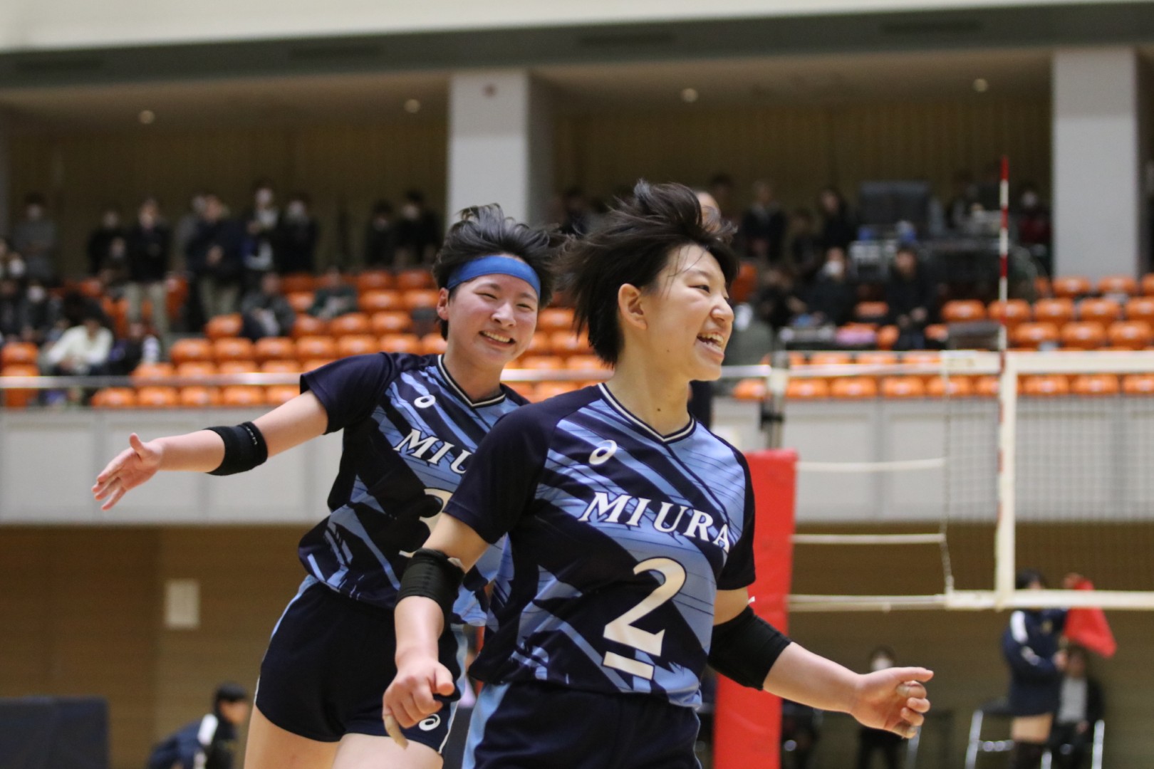 「心を一つに」チームをまとめ上げた三浦学苑高の#2川尾キャプテン。奥はポイントゲッターの櫻井
