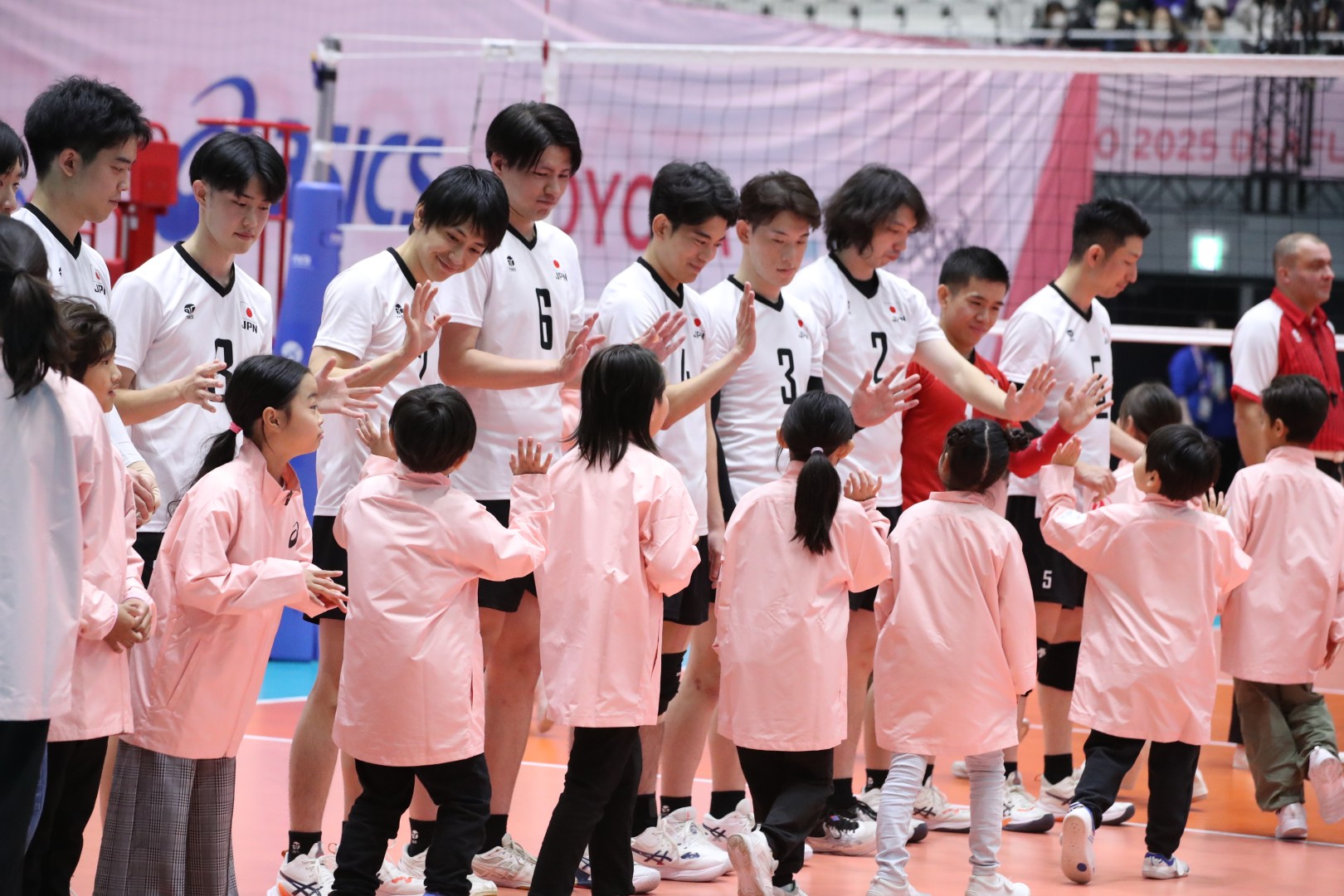 グループBのインドが棄権した男子は、9チームでの戦い。グループAの日本は予選ラウンドで4試合を戦った。やはり硬さの目立った初戦ではイタリアに敗れたが、続くブルガリアとフランスには勝利しムードも上昇。20日のアメリカ戦では各セットで競り合った。しかし、ここまで無敗の強敵に惜しくも1-3で敗れて2勝2敗のグループ3位でトーナメントへ進み、まずはグループBの2位ウクライナに挑む。好守で何度も会場を沸かせるリベロ坂下真一は「こんな夢の舞台で、一丸となって試合ができるのは素晴らしいこと。いい結果を残したい」と意気込んでいた。