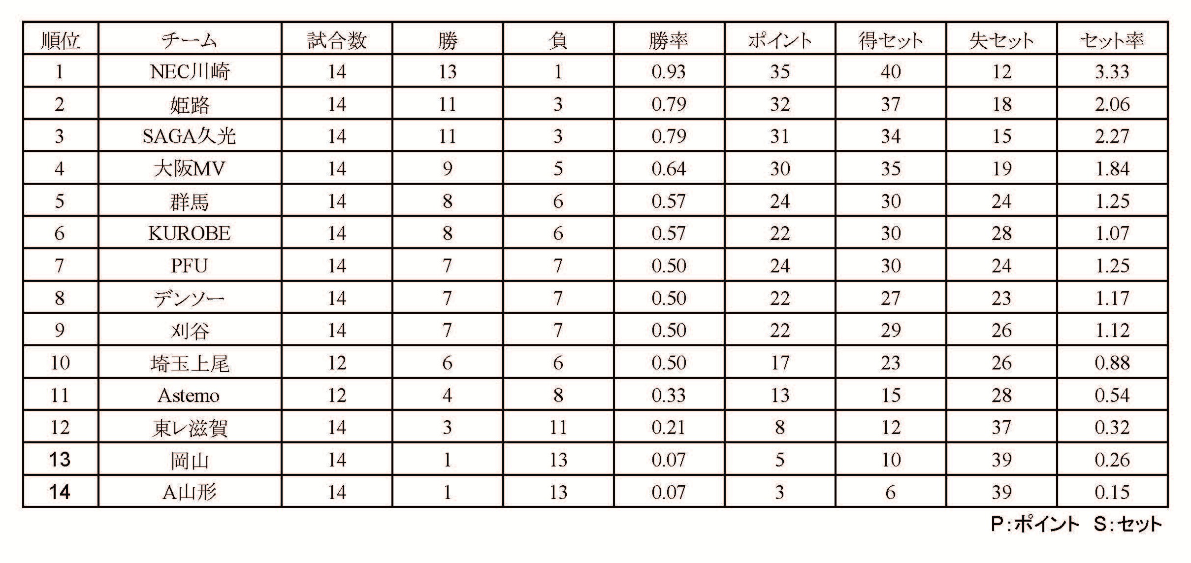 そのほかでは、NECレッドロケッツ川崎、SAGA久光スプリングス、デンソーエアリービーズ、ヴィクトリーナ姫路、群馬グリーンウイングスが連勝を飾った。