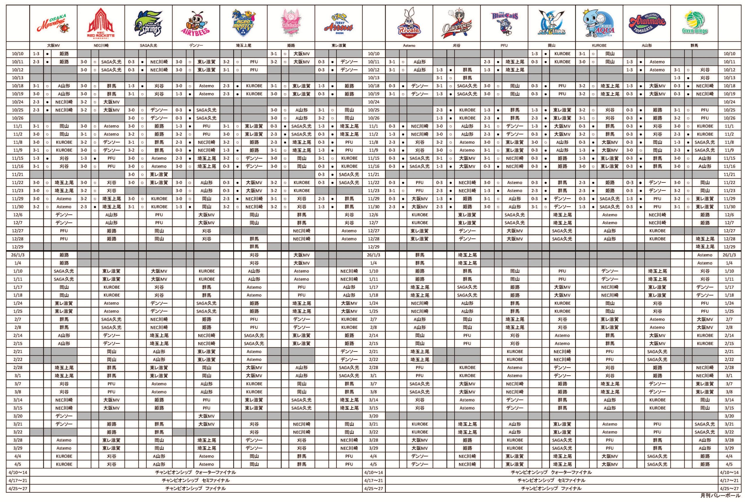 そのほかでは、ヴィクトリーナ姫路、SAGA久光スプリングス、大阪マーヴェラス、群馬グリーンウイングスと、PFUブルーキャッツ石川かほくが連勝を飾った。