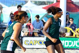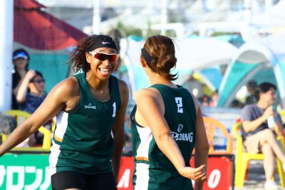 東谷の場合、オフシーズンは毎年、平塚(神奈川)でビーチバレーボールの練習に励んでいるそう。立川大会には同じ八王子実践高出身の先輩である熊田美愛(株式会社カインドッグス)と参戦した。