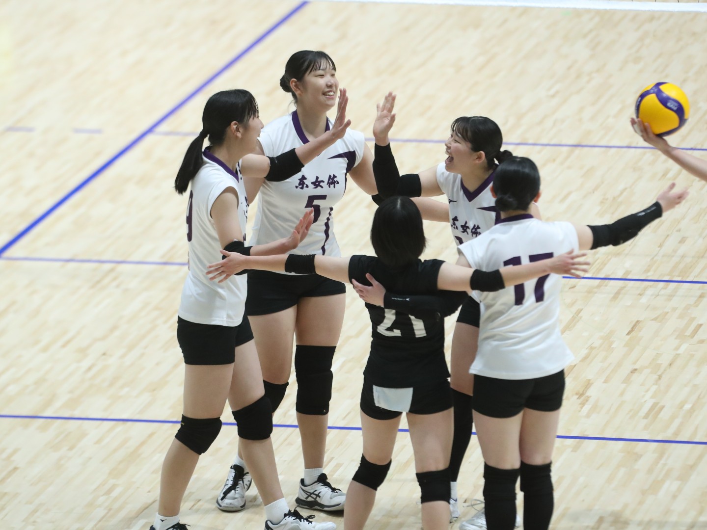 女子準決勝の第1試合では東京女体大と明海大が対戦。今季、両校は関東大学1部リーグ(春季・秋季)で2度対戦しており、いずれも東京女体大が勝利していた。東京女体大が第1セットを先取して流れを引き寄せると、そのままストレートで勝ちきり、決勝進出を決めた。
