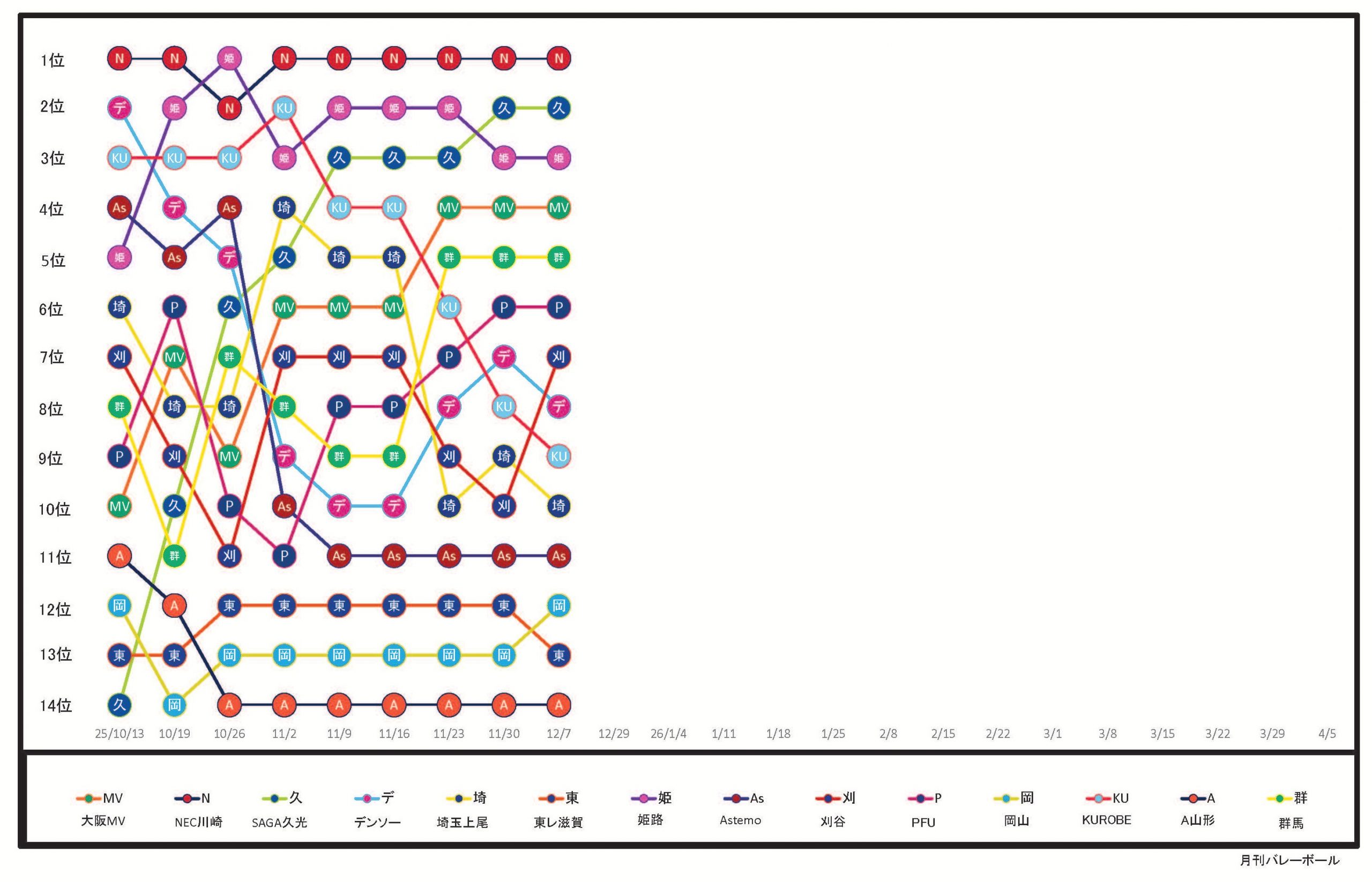 バレーボールの国内最高峰リーグ、2025-26大同生命SV.LEAGUE WOMEN(SV女子)は12月6日(土)と7日(日)の2日間で14試合が行われた。