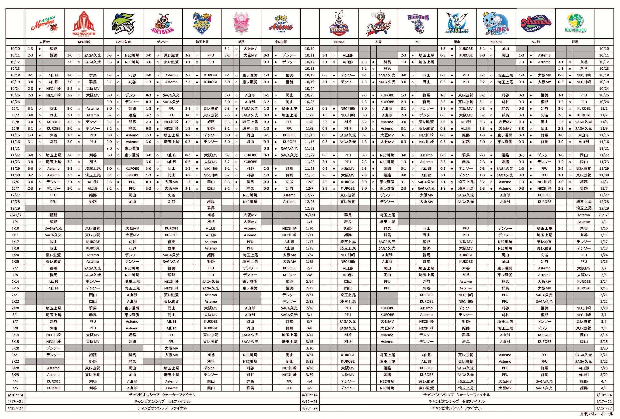NECレッドロケッツは連勝を飾り、その他の対戦は1勝ずつを分け合った。
