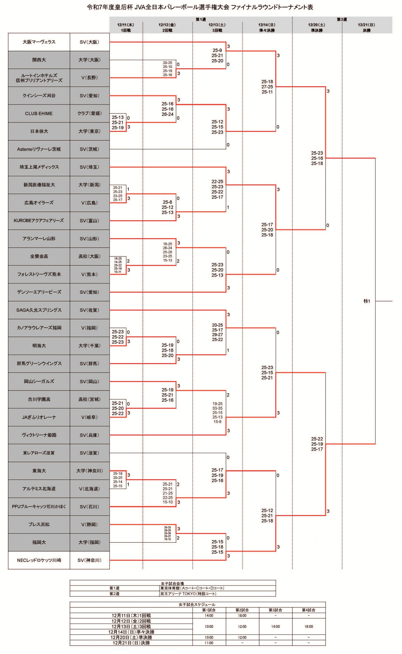 皇后杯ファイナルラウンドトーナメント表