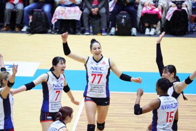 首位を走るNECレッドロケッツ川崎はアウェーでヴィクトリーナ姫路と対戦。初戦は第1セットから30点を超える接戦となり、最後は姫路に押しきられて先取を許した。続く第2セットを奪い返して流れを引き戻すと、その勢いのまま連続でセットを奪取し、逆転勝利を収めた。この試合ではジョバンナ・ミラナ・デイ(22得点)とシルビア・チネロ・ヌワカロール(22得点)が得点を重ね、甲萌香(15得点)、山田二千華(12得点)がいずれも2桁得点をあげるなど、ミドルブロッカー陣を効果的に生かして勝利につなげた。続く2戦目もNEC川崎は1セットを失ったものの、3-1で勝利して連勝を飾り、首位の座を守った。