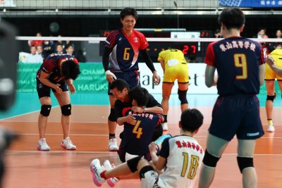 その試合の第1セットは東山高が25-21で獲得。第2セットは鎮西高がリードを築くも、東山高がじりじりと追い上げ、ジュースにもつれ込む。果たして東山高が29-27で競り勝った。
