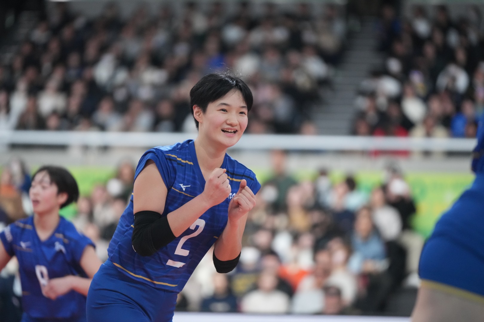 女子決勝ではインターハイ優勝の金蘭会(大阪①)と、国スポ制覇(選抜チーム)の就実(岡山)が対戦。第1セットは中盤に金蘭会が連続得点を重ねて先行。終盤、就実も連続得点で追い上げたものの及ばず、金蘭会が先取。第2セットは、序盤から先行した就実が連続得点でリードを広げたが、金蘭会も連続得点で追いつく展開。就実が先にセットポイントに到達したものの、ジュースに持ち込んだ金蘭会が押し切ってセットを連取した。あとがなくなった就実は、第3セット中盤以降に連続得点を重ねて前に出る。このリードを保ってセットポイントを握った就実だが、ここでも金蘭会が粘り強く追い上げてジュースに持ち込むと、接戦を制し、7大会ぶり4度目の優勝を飾った。