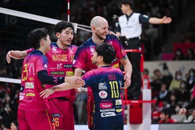 日本製鉄堺ブレイザーズはホームでVC長野トライデンツと対戦。初戦をストレートで勝利して連敗を止めた日鉄堺BZは、続く2戦目では第1セットを落としたものの、第2セットを取り返すと、第3セット以降は一進一退の展開となり、最終第5セットを制して勝利をつかんだ。この試合では、トンマーゾ・リナルディ(25得点)と高梨健太(21得点)が、ともに60%超のアタック決定率で安定して得点を重ね、勝利に貢献。連勝で順位を一つ上げた。