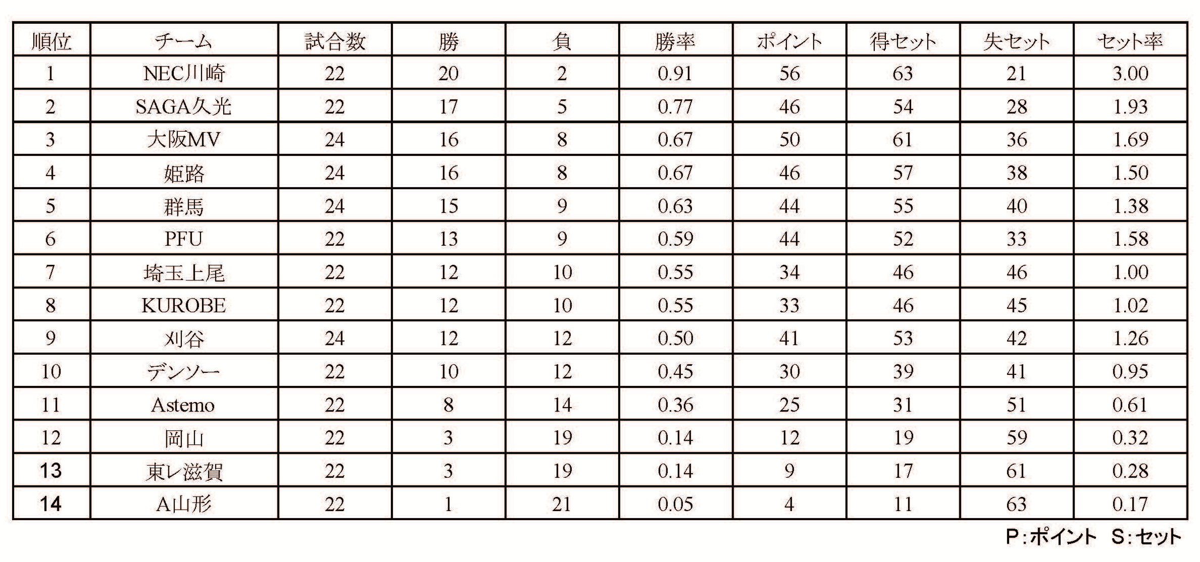 そのほかは、NECレッドロケッツ川崎、PFUブルーキャッツ石川かほく、埼玉上尾メディックスが連勝を飾り、その他のチームは1勝ずつを分け合った。