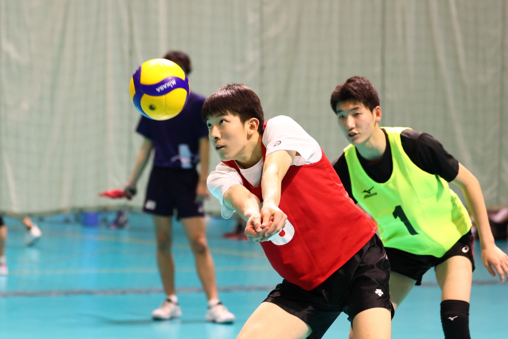 第二次合宿では国士舘大との練習試合を実施し、男子チームの監督を務める山岡航太郎先生(鎌田中〔長野〕)は「大学生という、自分たちよりも高さとパワーのある相手と戦うゲームを通してこそ見えてくる課題や選手の持ち味があります。特に今回はリベロを選出していない分、アタッカー陣のレシーブ力がどれほどあるかを見極めることができました。それはチームづくり、そしてディフェンスの柱を考えるうえで有意義になりました」と語った。