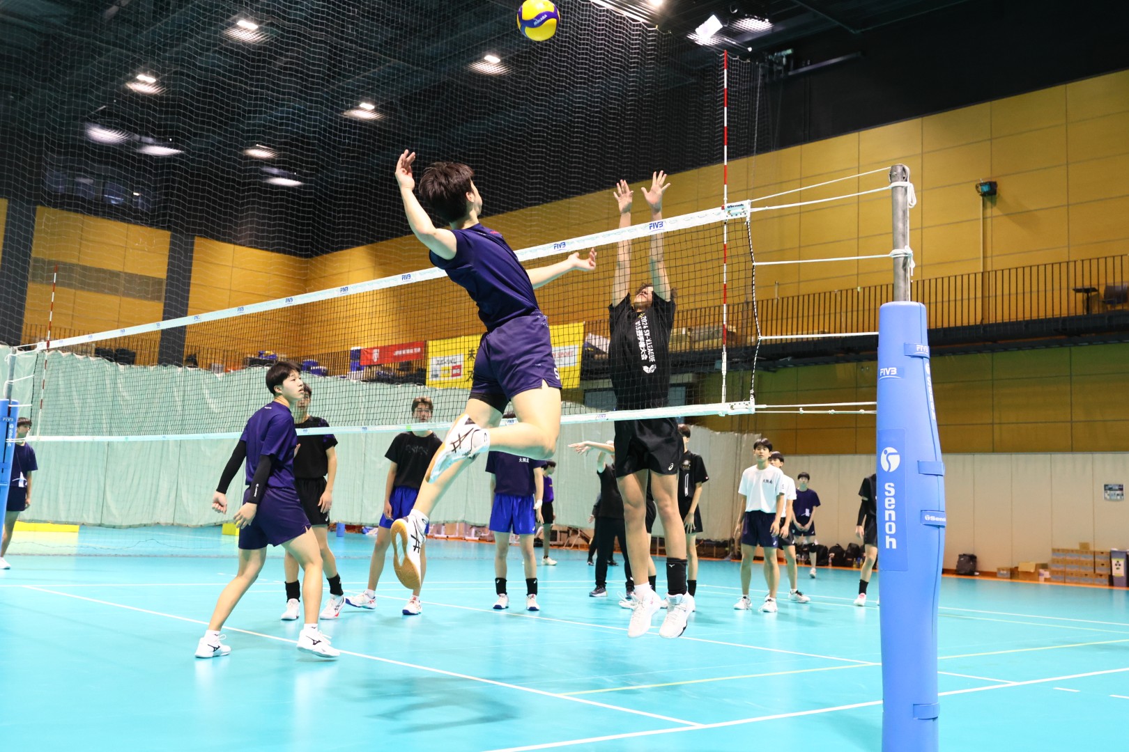 男子は国士舘大(コート手前)との練習試合を通して現状を把握