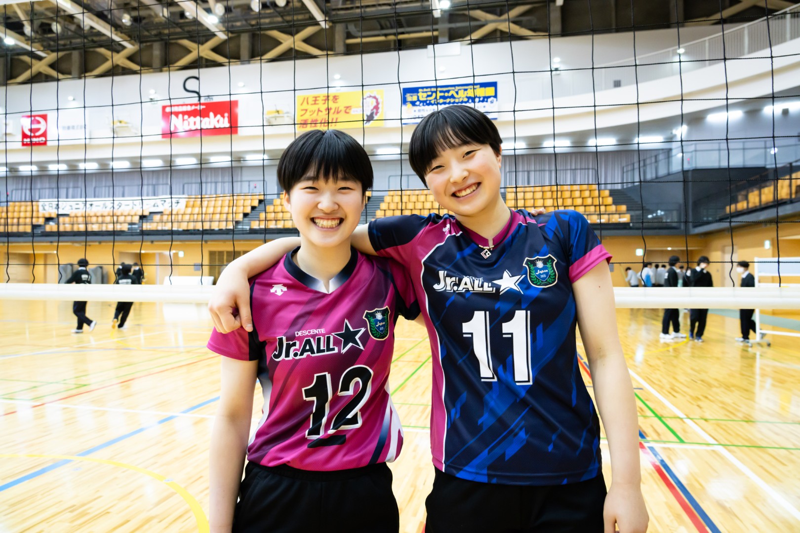 決勝(対就実高〔岡山〕)は各セットでスタートは西村が出場し、中盤から中山に交代する流れに。試合後には「朝に右肩を脱臼してしまった」と話した中山はコンディションが優れないなかでも「そこで気持ちを引いても結果はついてこないので、『もうやるしかない』」と腕を振り続け、アタック決定率50%(14打数)と高い数字を残した。その試合では、先述のU17世界選手権大会でベストリベロに輝いた仙波こころと対戦。セットカウント2-0で迎えた第3セット、26-26と同点の場面で上がった二段トスを打ち抜くと、仙波のレシーブをはじき、勝利を引き寄せた。学年は違うが、大の仲よしだという仙波との対戦については、笑顔でこう語った。