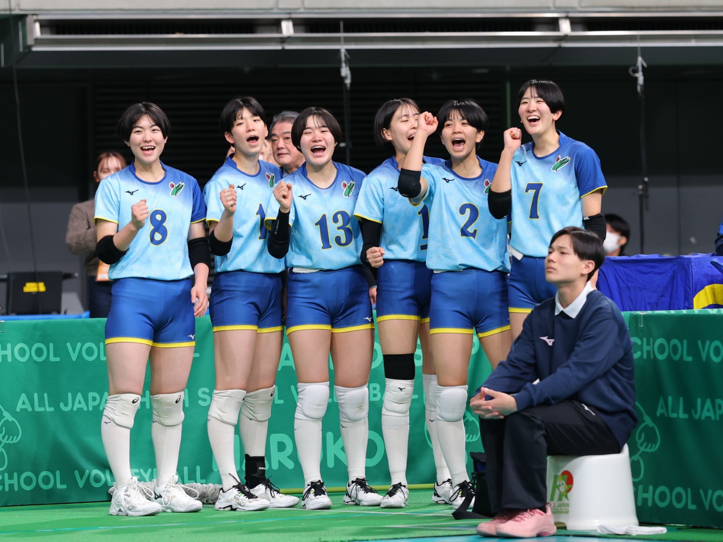 迎えた春高本戦、2回戦(対古川学園高〔宮城〕)と3回戦(対銀河学院高〔広島〕)は濵川、準々決勝(対文京学院大女高〔東京〕)は姫子松をスタートで起用し、準決勝へ勝ち上がった。2人を併用するなかで、小林監督は準決勝(対就実高〔岡山〕)での起用を直前まで悩み、当日の朝の練習を見て、「アタッカー陣と合っている度合いが上だった」と濵川をスタメンに送り出した。姫子松はベンチスタートだったが、「コートに入っていなくてもチームを引っ張る気持ちを持ちつつ、濵川に自分の思いを託しました」と振り返る。大舞台で躍動した濵川は試合中も頻繁に姫子松とコミュニケーションをとり、「チームのルールなど意識しきれていないところや、トスワークについてお互いに指摘し合っていました」と振り返るように、2人で力を合わせて戦った。
