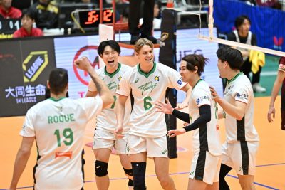 そのほかには、サントリーサンバーズ大阪、大阪ブルテオンが連勝を飾り、ジェイテクトSTINGS愛知と日本製鉄堺ブレイザーズは1勝ずつを分け合った。