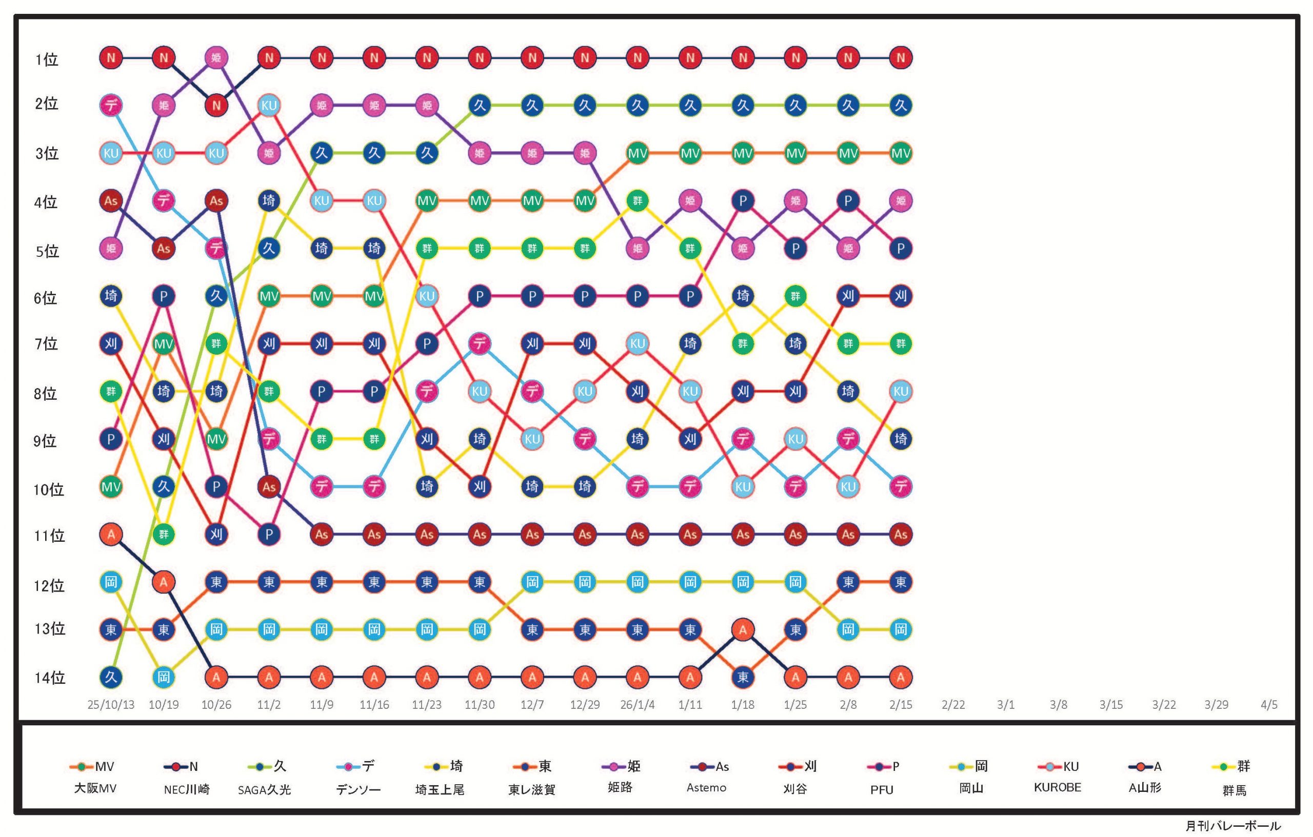 バレーボールの国内最高峰リーグ、2025-26大同生命SV.LEAGUE WOMEN(SV女子)は2月14日(土)と15日(日)の2日間で14試合が行われた。