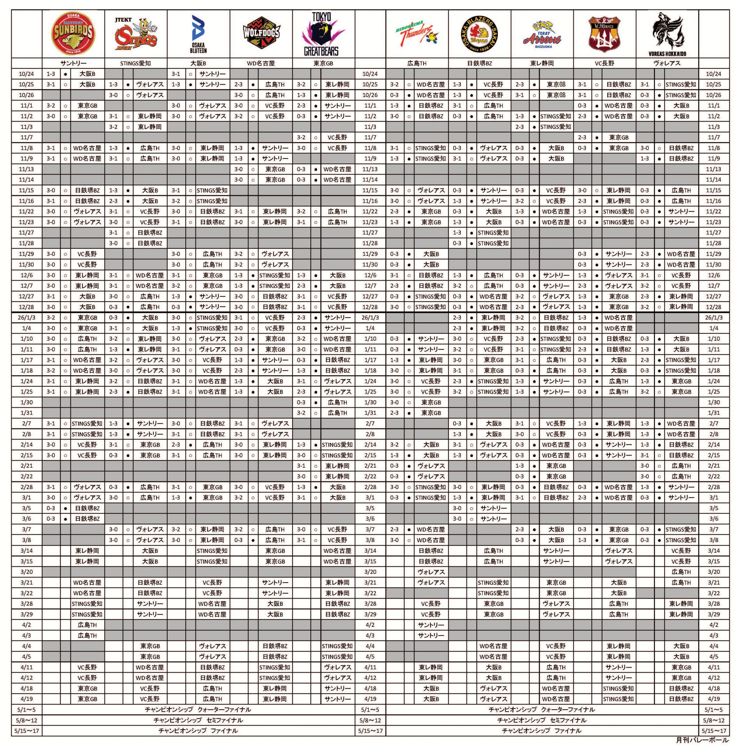 SVリーグ男子 大阪ブルテオンがチャンピオンシップ進出を決めて残りは4枠 日鉄堺BZがサントリーに連勝