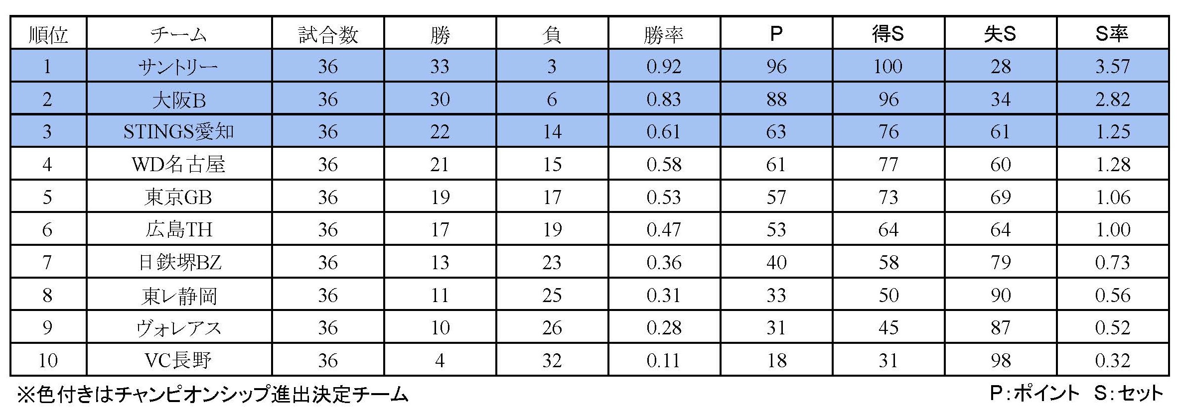 そのほかでは、サントリーサンバーズ大阪と大阪ブルテオンが連勝を飾り、東京グレートベアーズと東レアローズ静岡は1勝ずつを分け合った。