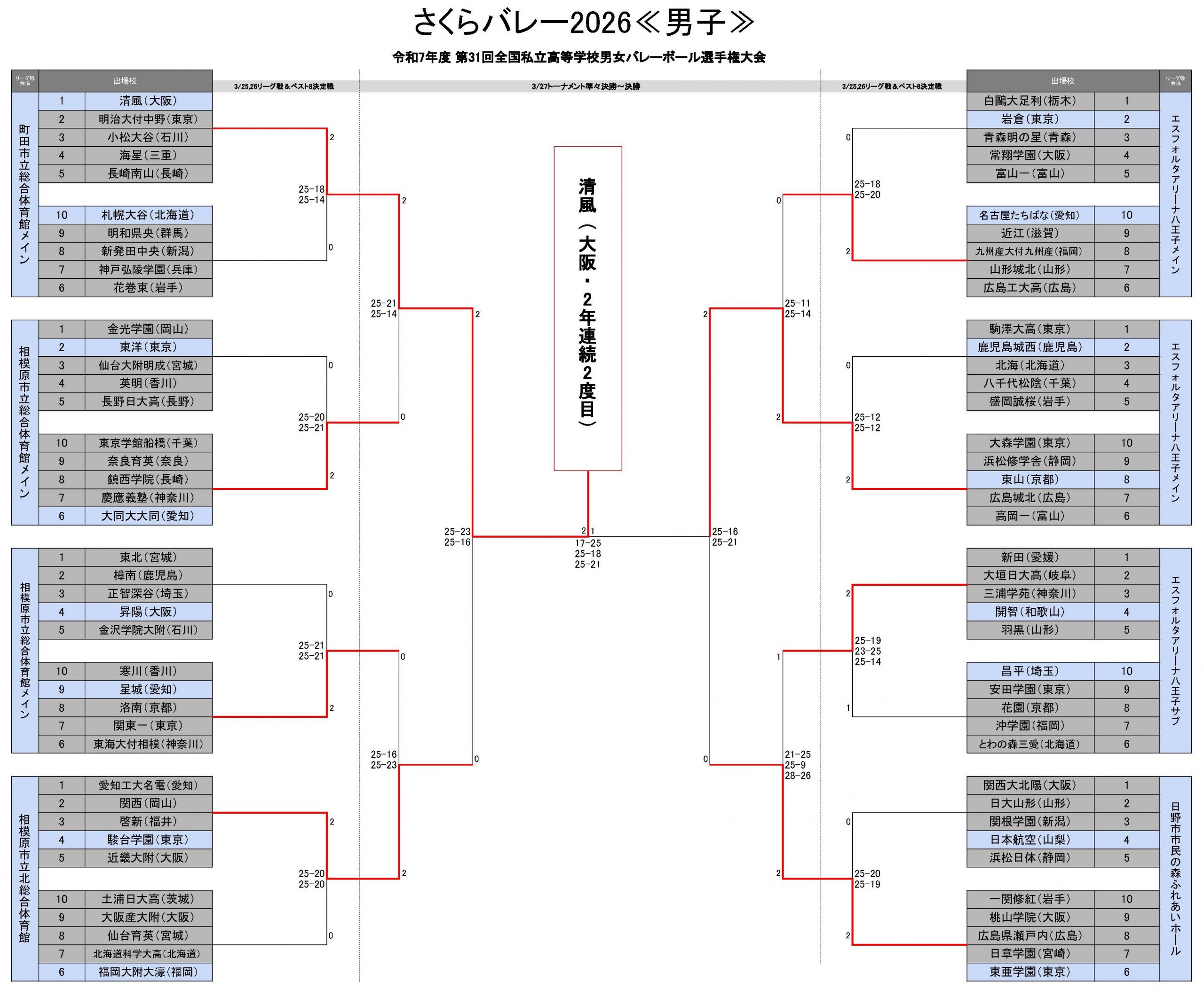 さくらバレー2026 清風が東山に逆転勝利で連覇を達成 男子最終日結果