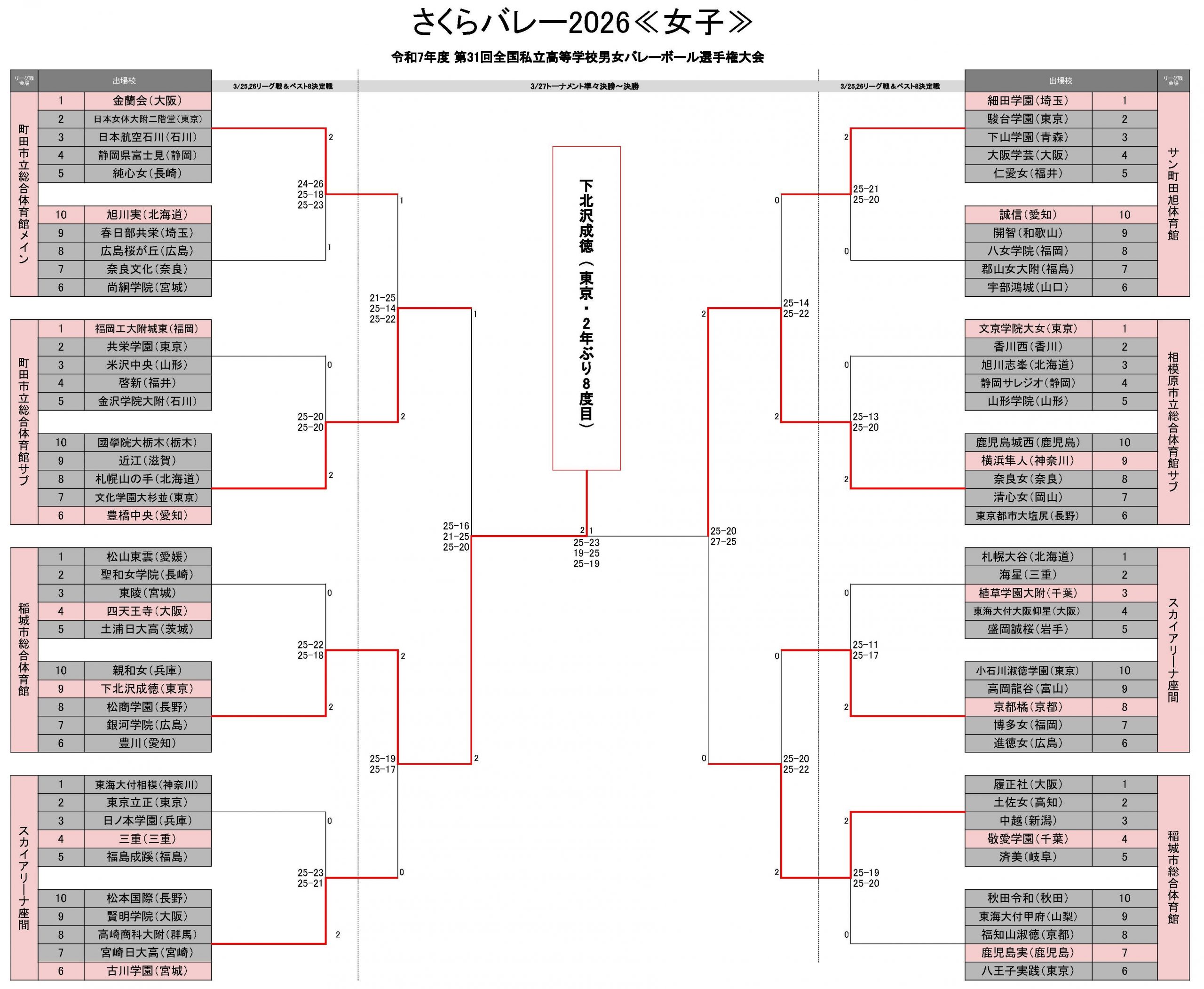 さくらバレー2026 下北沢成徳がフルセットを制して2年ぶりの優勝 女子最終日結果