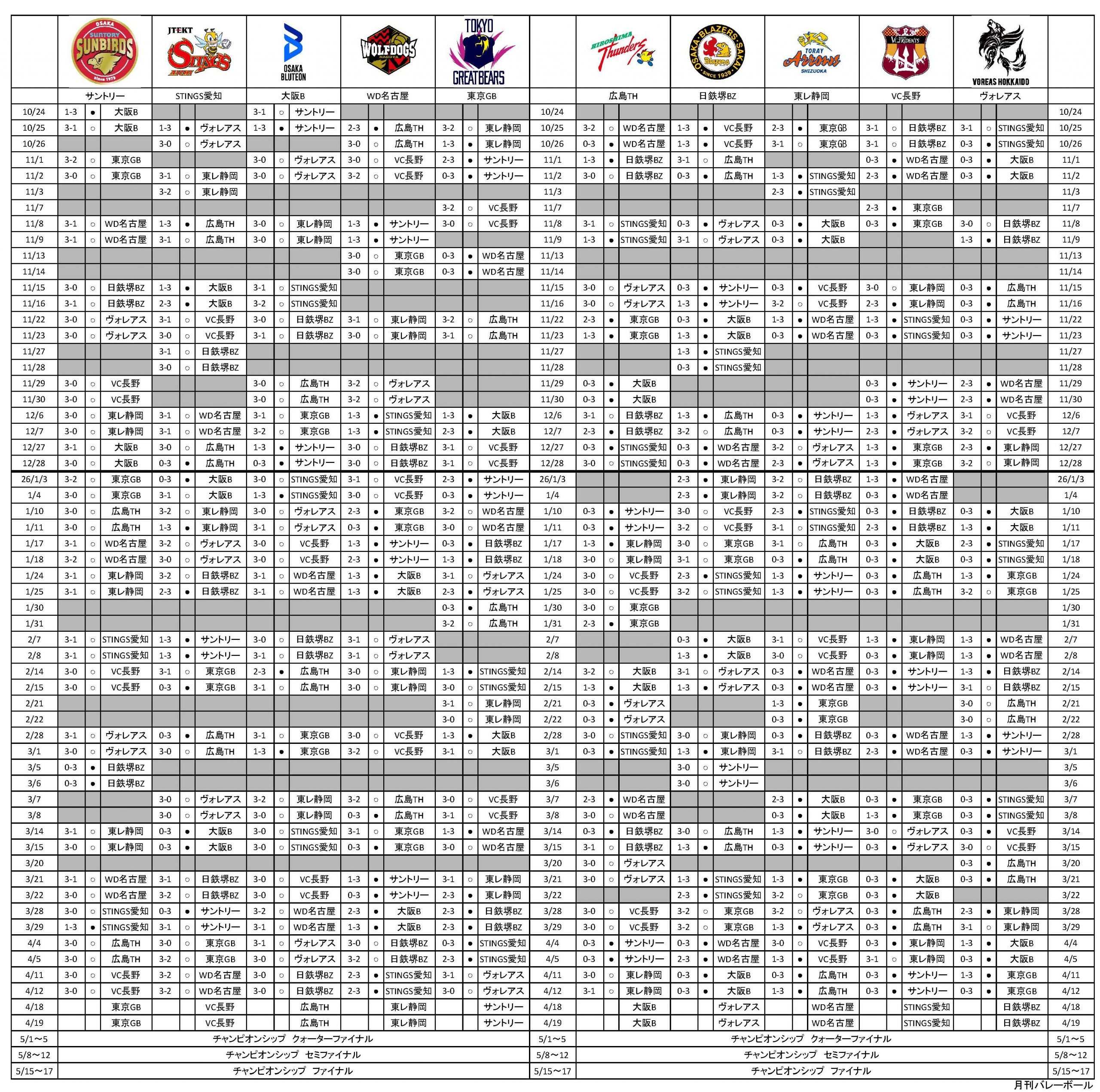 SVリーグ男子 WD名古屋、東京GB、広島THがチャンピオンシップ進出決定 全6チームが出そろう