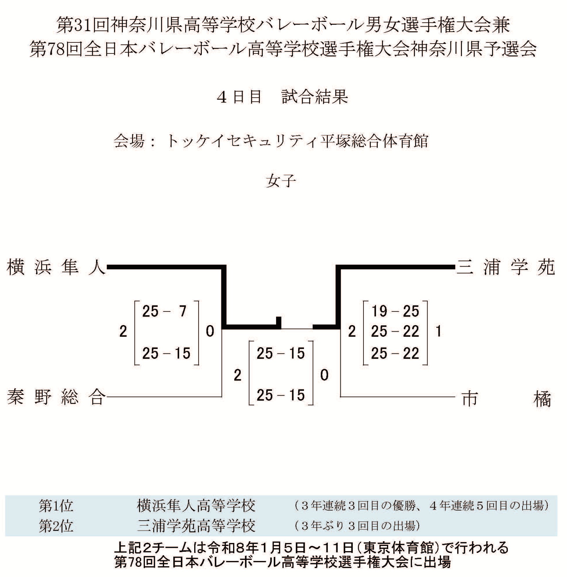 > 春高2026女子神奈川予選結果