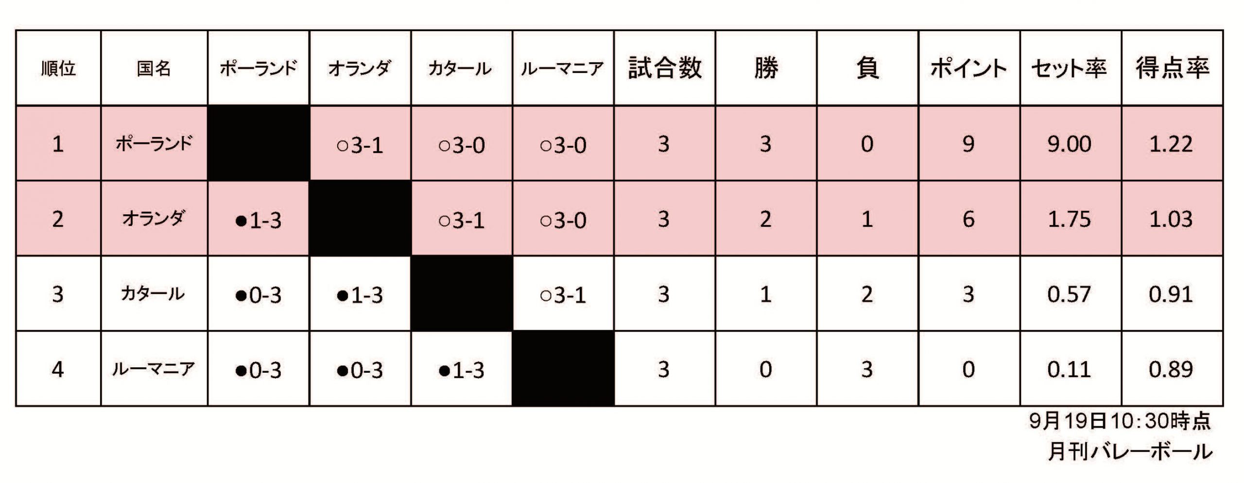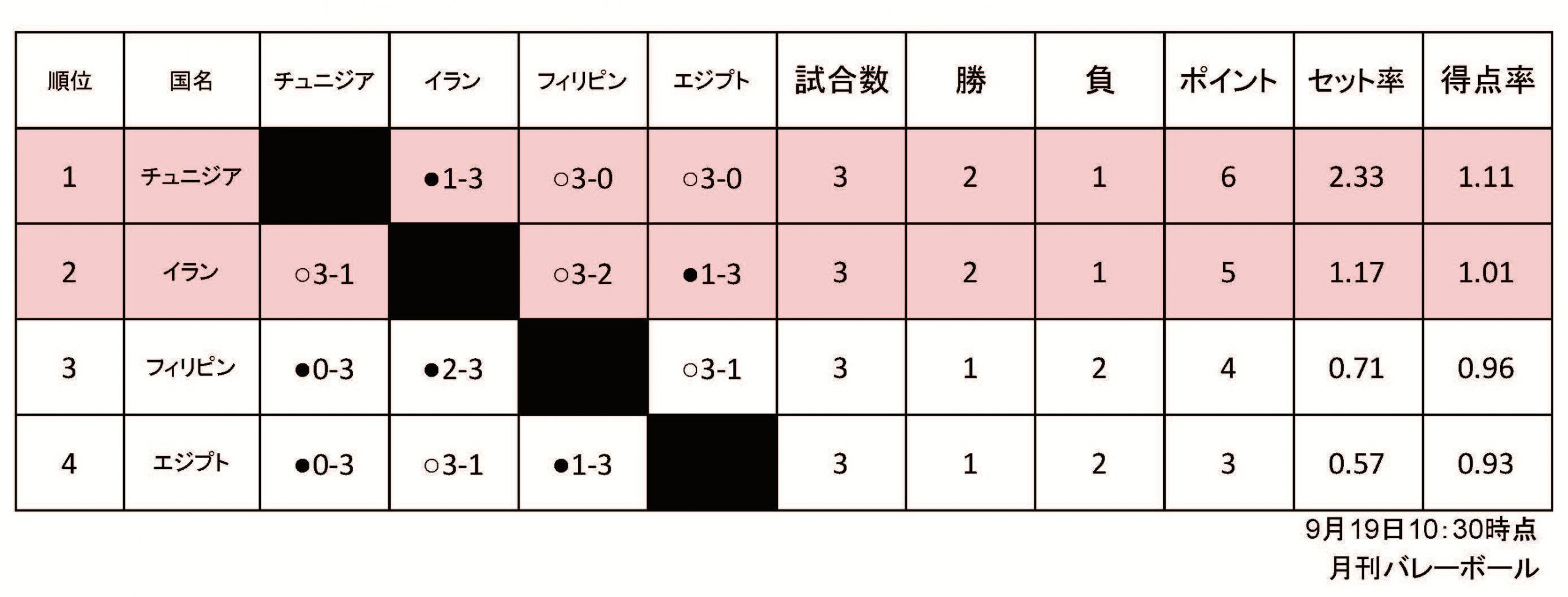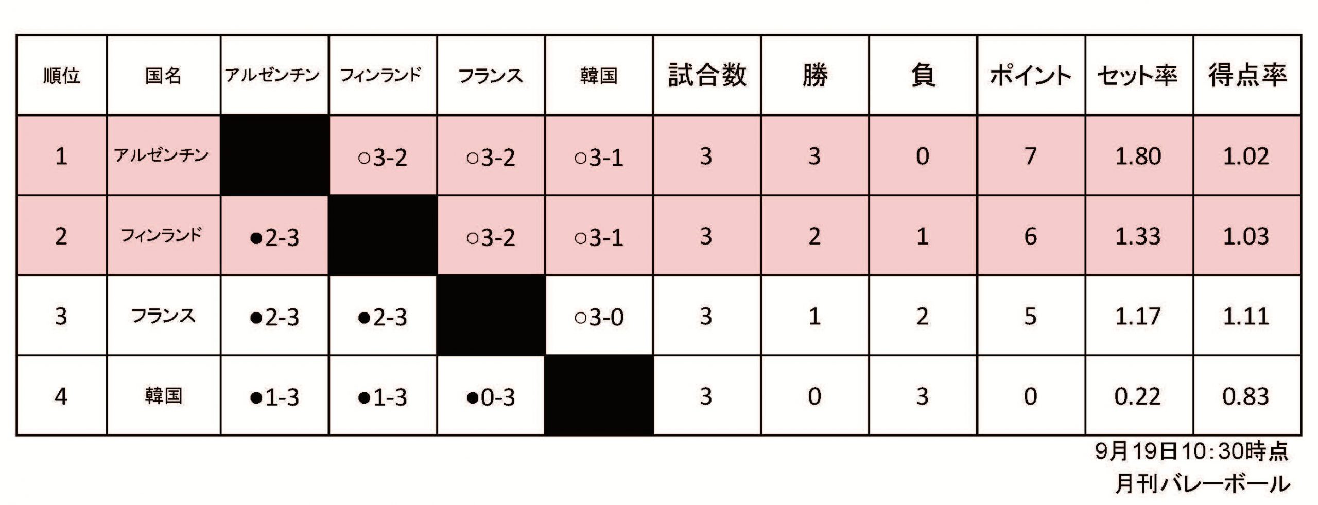 2025男子世界選手権予選ラウンド星取表(D組)