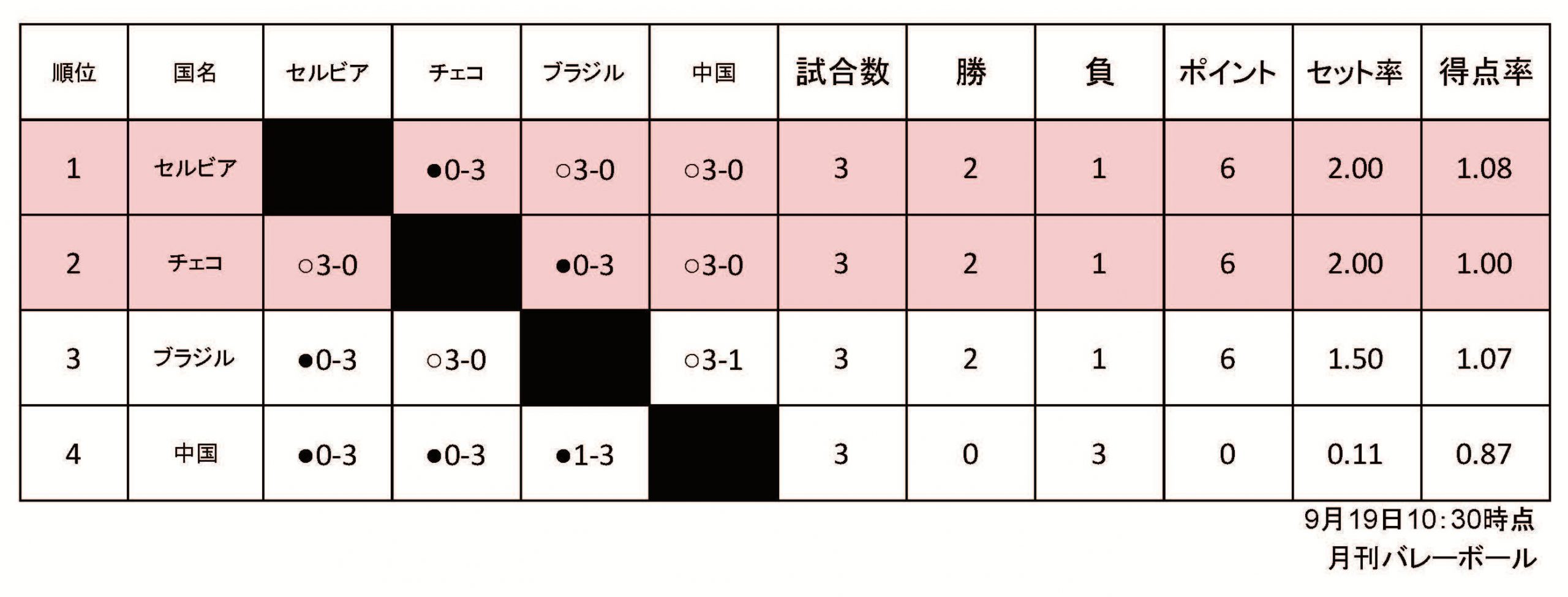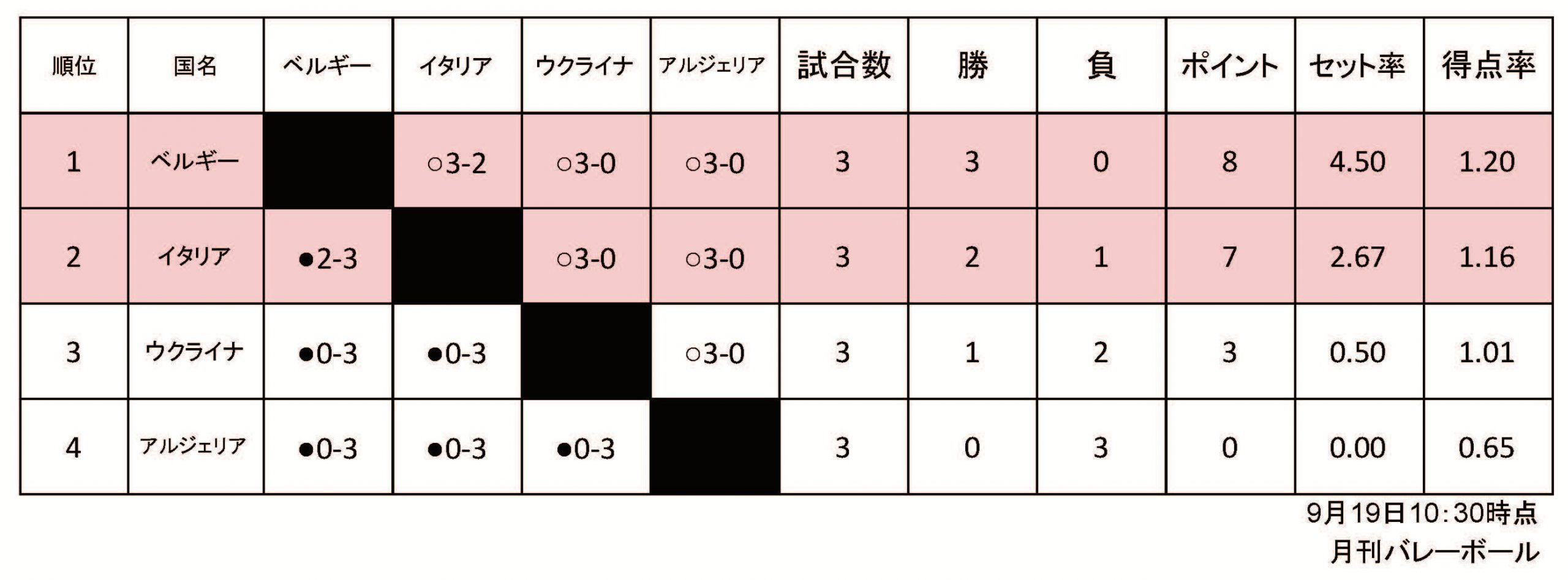 2025男子世界選手権予選ラウンド星取表(B組)