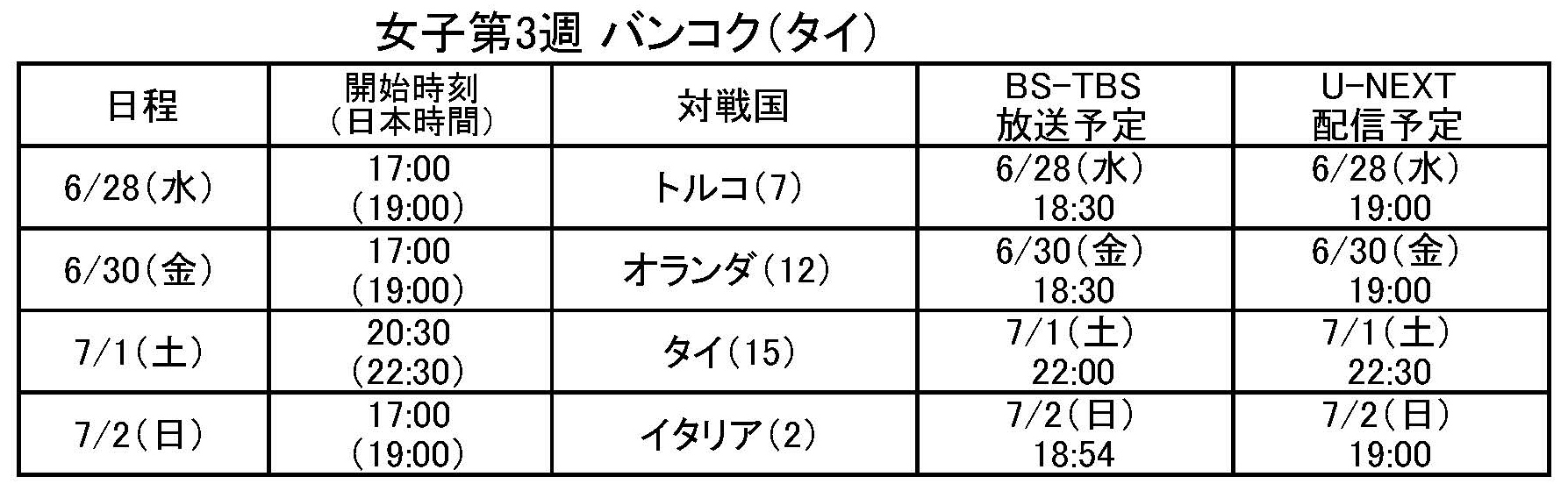女子日本戦の試合日程とテレビ放送・配信スケジュールは下記の通り。男女日本ラウンドのチケット情報はコチラ